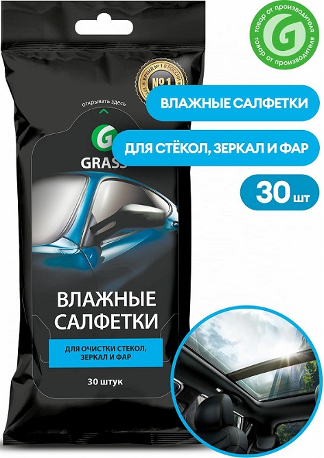 / Grass Влажные салфетки для очистки Стёкол Зеркал и Фар 30шт